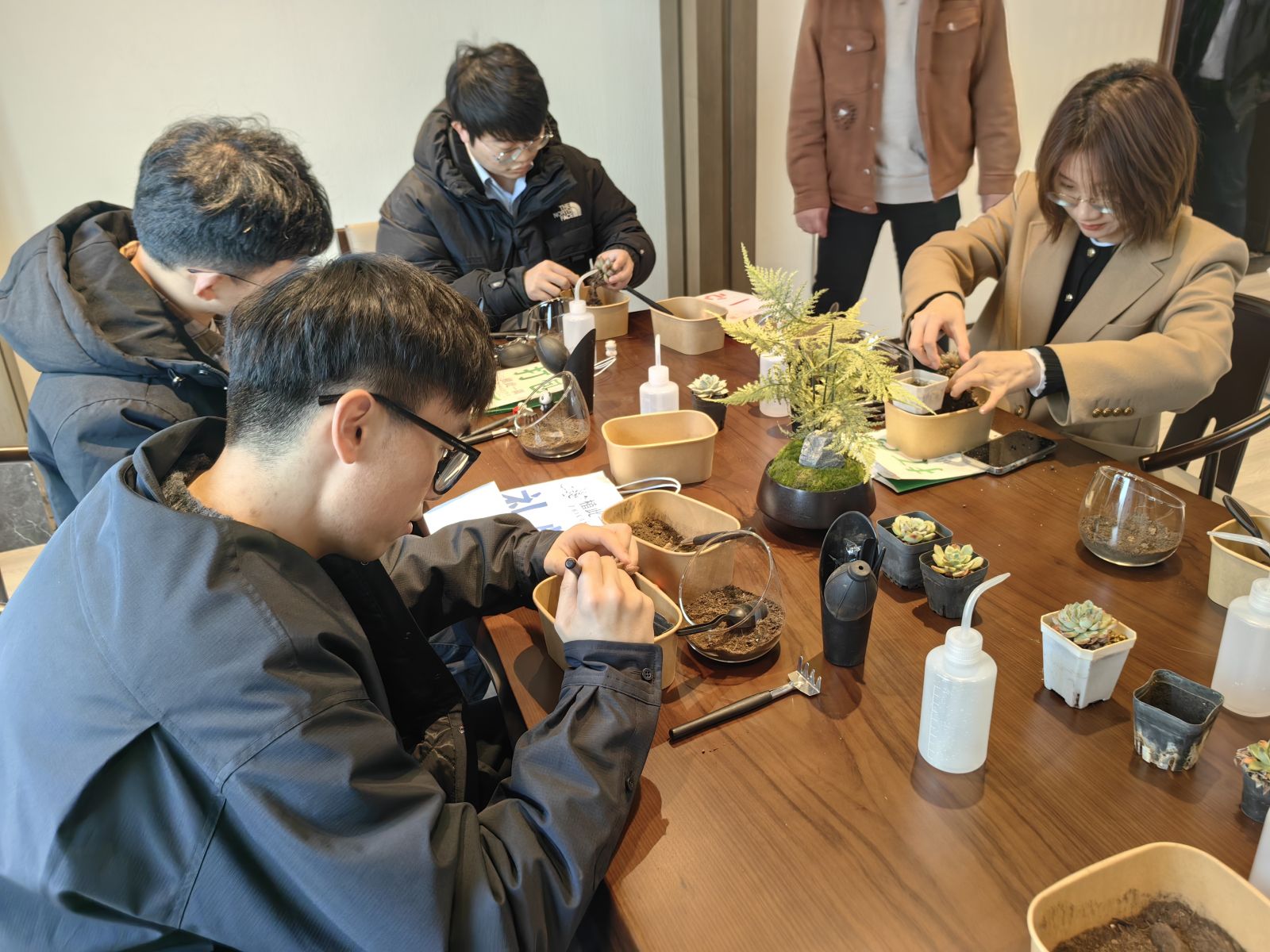 大家在專業(yè)老師的指導(dǎo)下動手制作了微景觀生態(tài)瓶,學(xué)習(xí)了植物種植及養(yǎng)護知識。現(xiàn)場氣氛熱烈,大家不僅感受到了DIY的樂趣,更進一步增強了生態(tài)、環(huán)保意識。